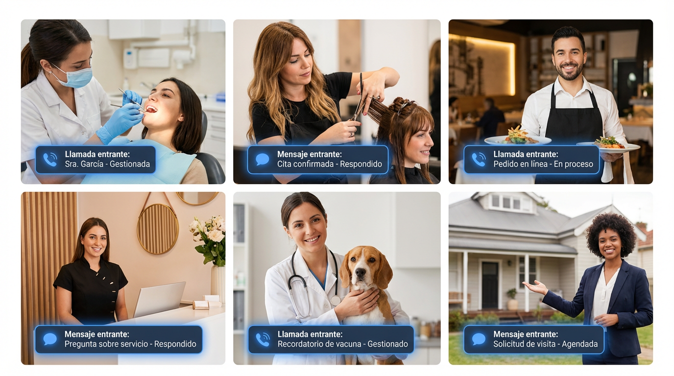 Cada sector tiene su propio lenguaje, sus propias preguntas y su propia forma de trabajar. Un paciente no llama igual que un comensal. Un propietario no pregunta lo mismo que alguien que busca un corte de pelo. Por eso hemos creado los Nucleos: recepcionistas virtuales entrenadas especificamente para un sector concreto.